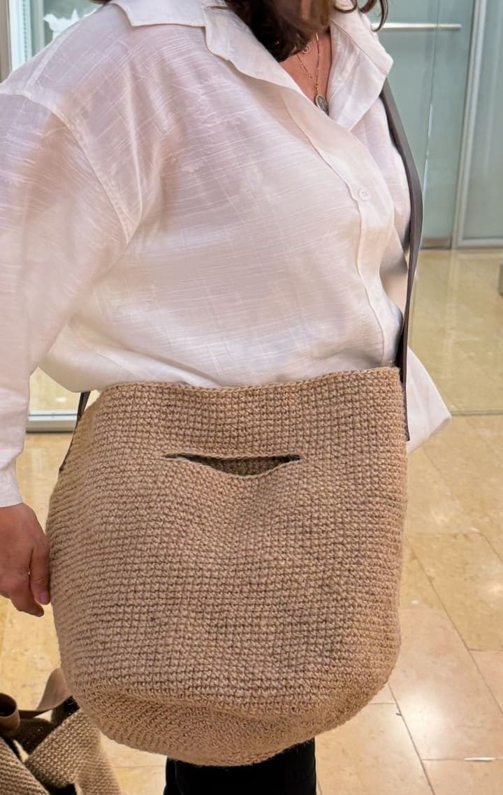 Es una pieza tejida con yute con un estilo boho y cómodo. Forrada en loneta de lino, con un práctico bolsillo. Dispone de una larga asa de piel genuina para poderla llevar cruzada , pero además también se puede llevar al hombro o de mano.