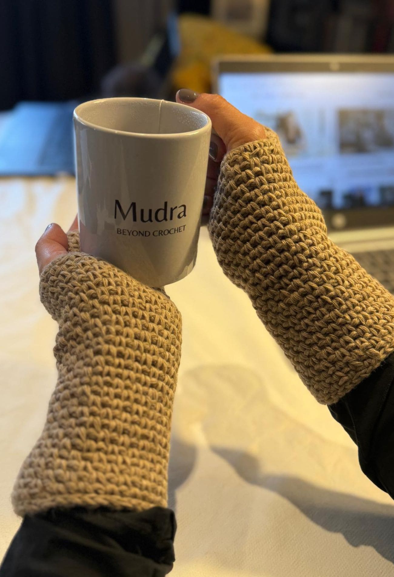 Nuestros mitones están tejidos a mano, pensados para ofrecer abrigo natural manteniendo los dedos libres para moverte con comodidad. Su textura suave y su diseño artesanal los convierten en un complemento práctico y estiloso para el día a día.