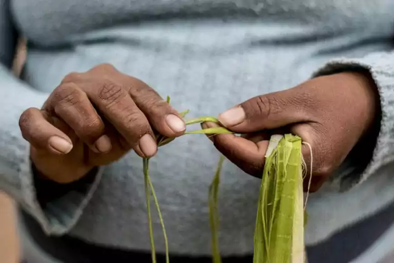 Este tejido, más que una técnica, es una expresión cultural que refleja la conexión con la naturaleza y está tradicionalmente asociado a las mujeres wichí.En Mudra, hemos integrado estas creaciones en nuestra colección, honrando y celebrando los saberes ancestrales de las mujeres wichí y ofreciendo productos únicos «del bosque».